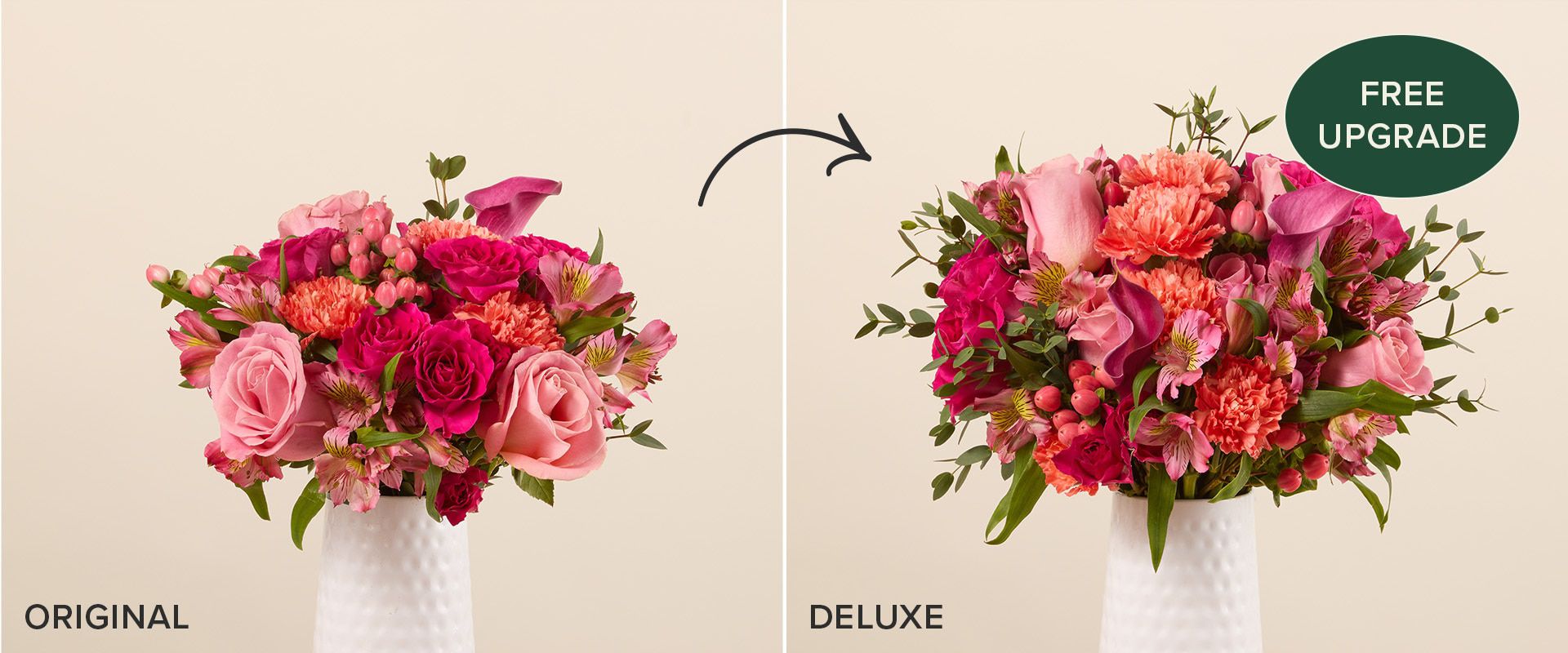 Get twice the flowers for no extra cost when you use code 2XBLOOMS on select Deluxe-sized Bouqs.