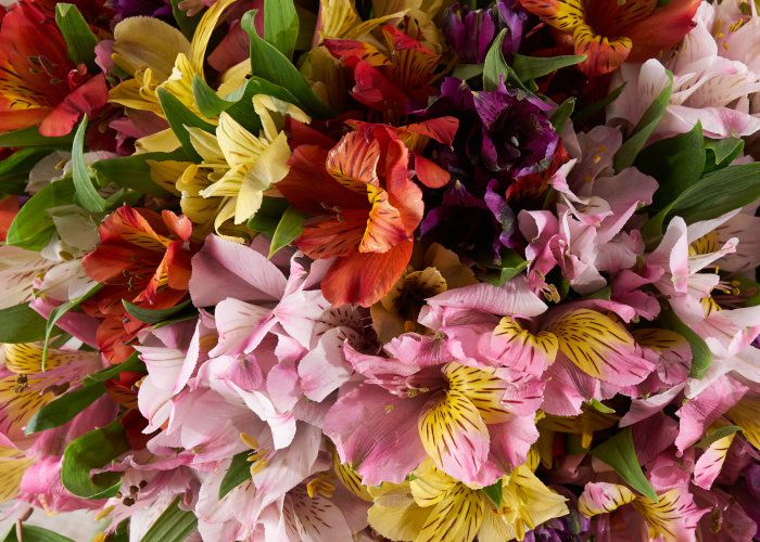 Alstroemeria is delivered in bud form and may appear green and/or dark on arrival, but its colors will quickly become more vibrant as they bloom. Each stem contains multiple blooms, so a bunch of five stems often means 25 flowers! If you see an individual flower starting to fade, simply remove the unsightly bloom so the rest of the bouquet can shine.