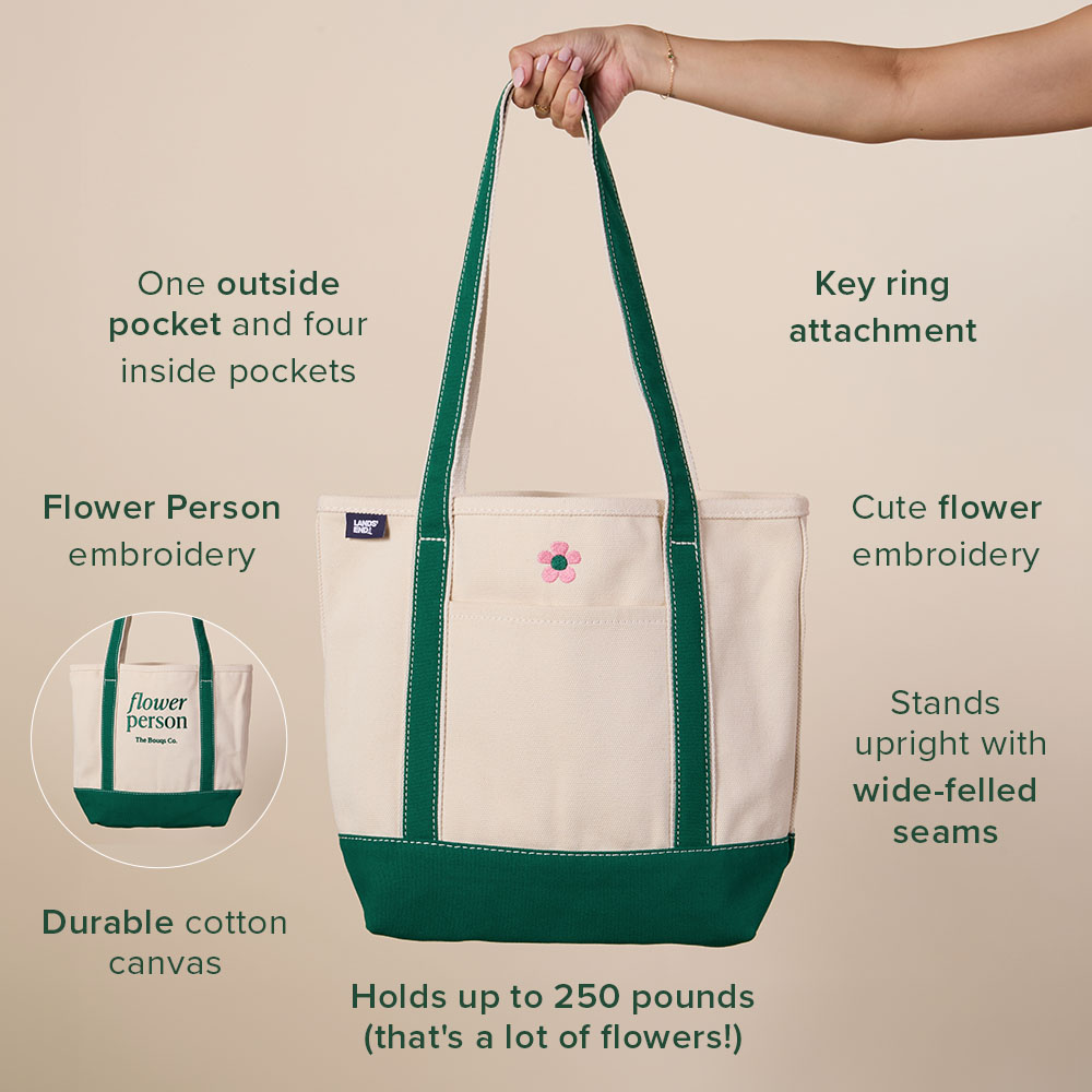 We partnered with Lands’ End on a custom-designed tote, featuring exclusive “Flower Person” embroidery—paired with farm-fresh blooms for a gift that lasts beyond the moment.