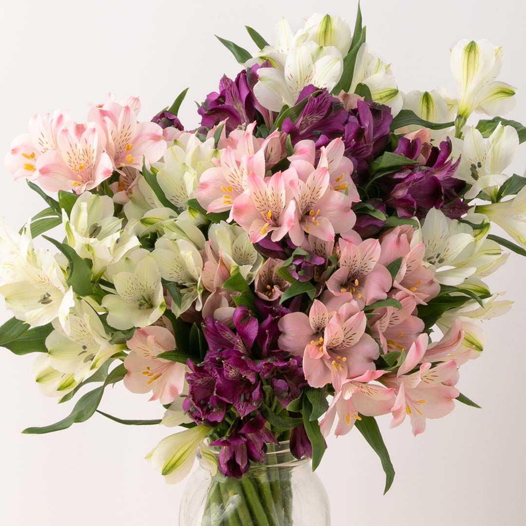 Listen to your heart when it’s calling for you to choose fluttery pink, purple, and white alstroemeria. Be still my…(you get it).