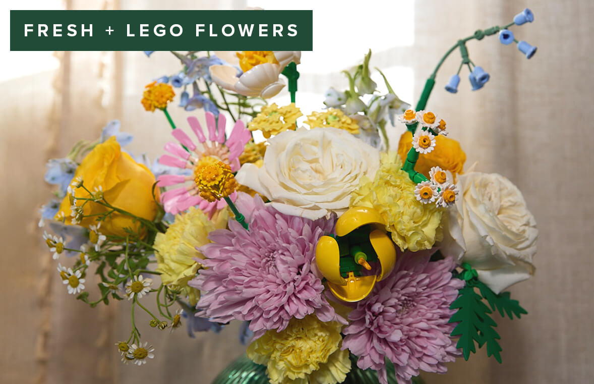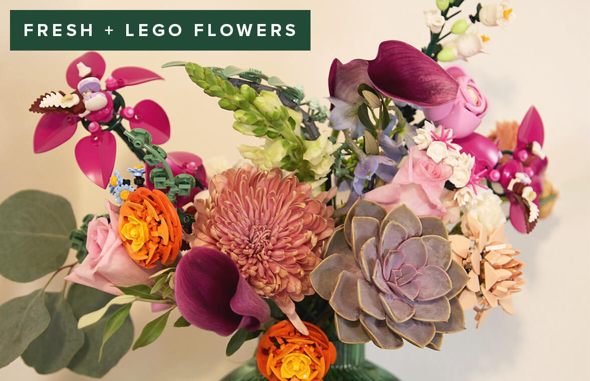 Bouqs farm-fresh flowers to enjoy now. A LEGO® bouquet to love forever.