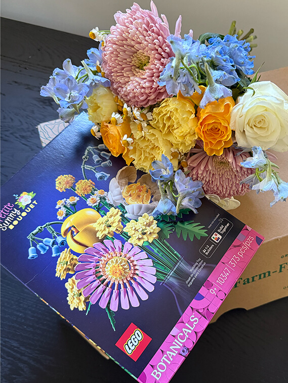 LEGO, the LEGO logo and products are trademarks of The LEGO Group, used here by permission. ©2025 The Bouqs Co. and The LEGO Group. All rights reserved.