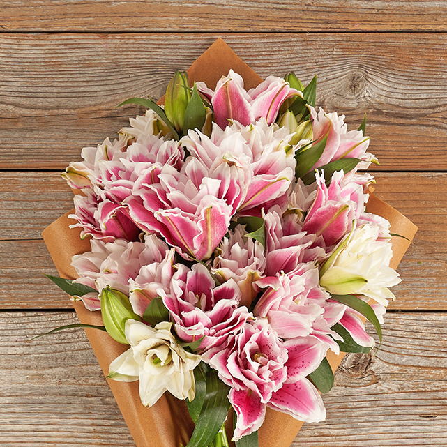 This fragrant arrangement showcases sweet-scented pink rose lilies.