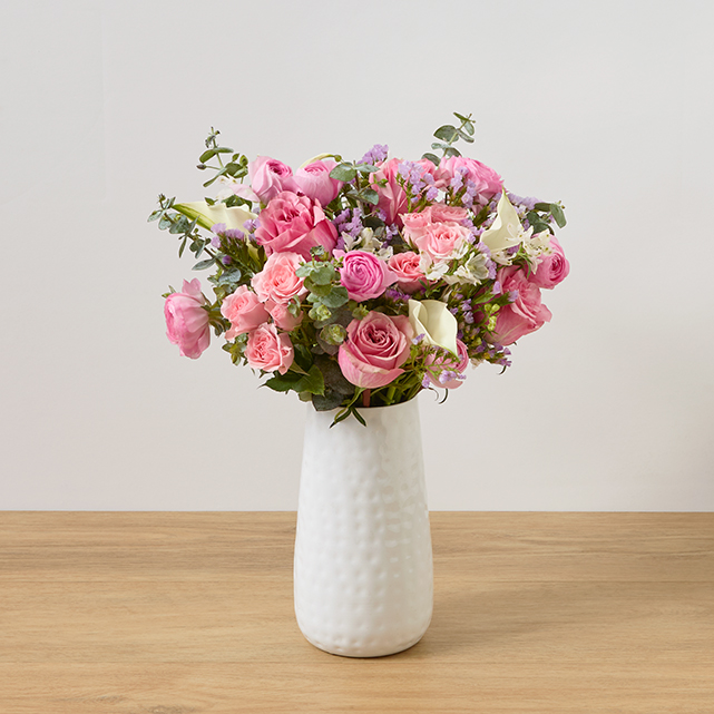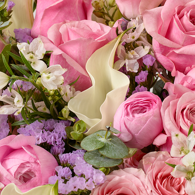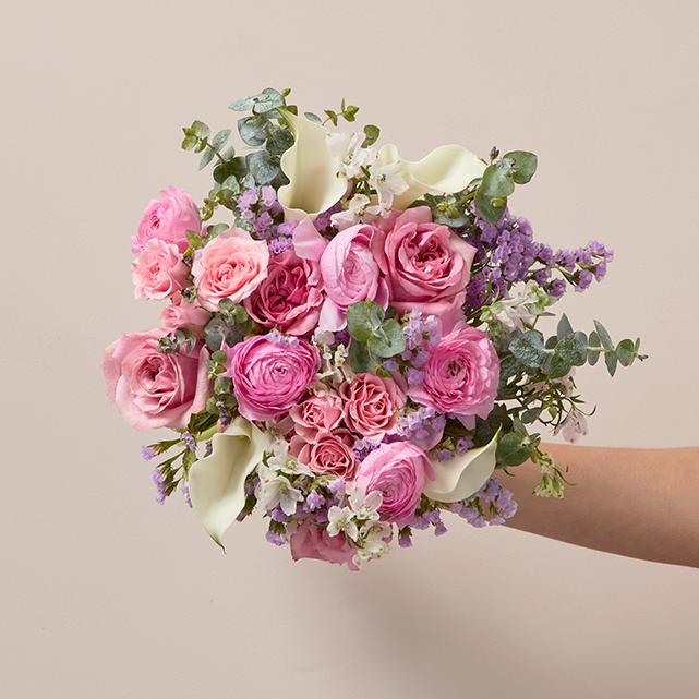 Just like the name suggests, she’s absolute perfection in pink and purple petals. This stunning bunch of roses, ranunculus and elegant calla lilies will make Mom’s day (or maybe even her whole year).