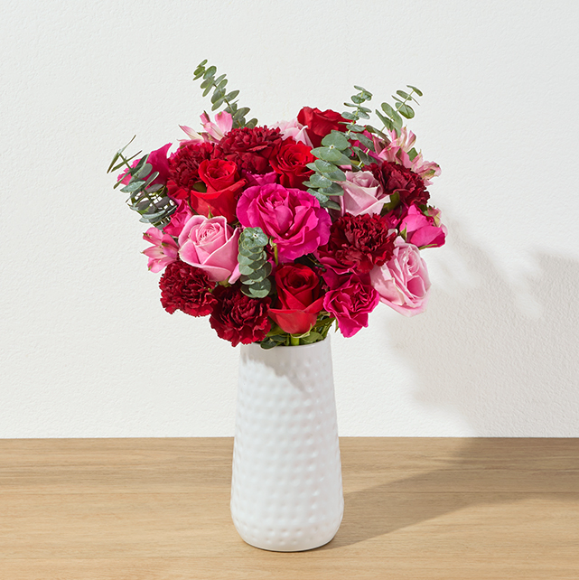 A stunning mixed arrangement of roses, carnations, and alstroemeria.