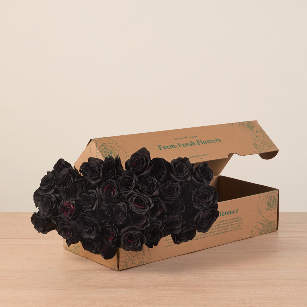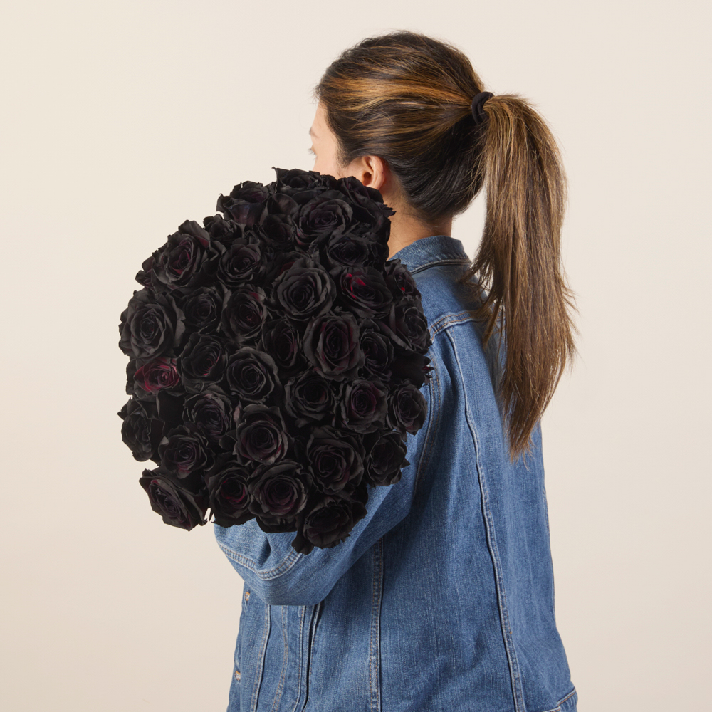 - Note: The dye used on our black roses is safe, but may leave some residue on surfaces or in water. To avoid vase staining, we recommend changing your Bouq's water every day.