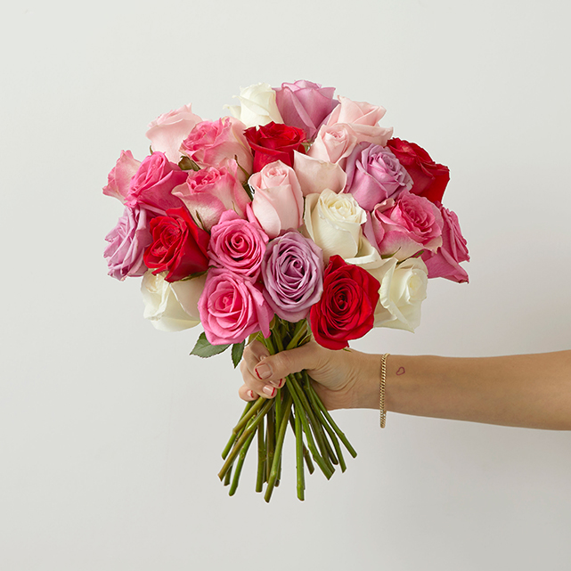 A delightful bouquet of colorful seasonal roses.