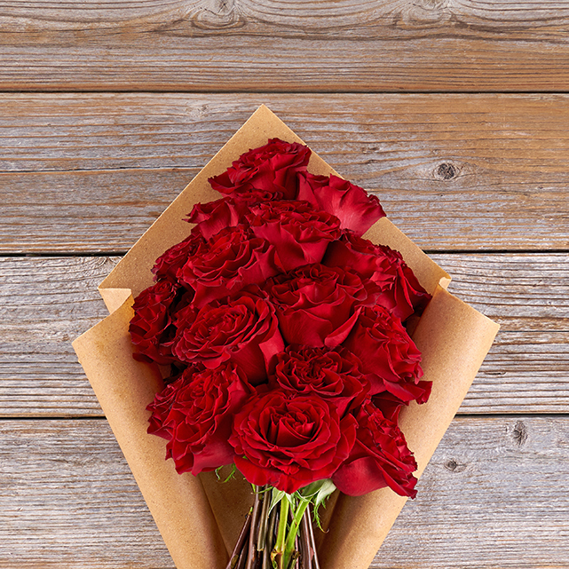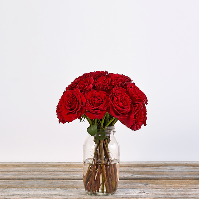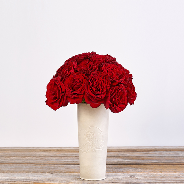 This bouquet is composed of red garden roses. The Deluxe includes 24 roses and the Grand includes 36 roses.