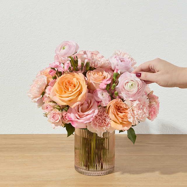 Ingredients: An all-pink bouquet of roses, ranunculus, carnations, and solomio