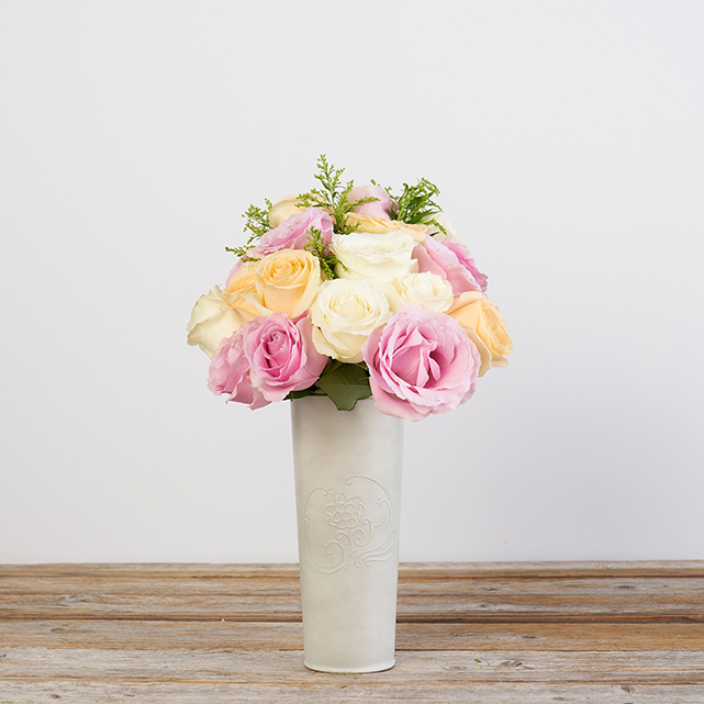 No snooze button needed to get your Dream On with these beautiful lavender, ivory, and coral roses. A potential side effect? Sing-a-longs.