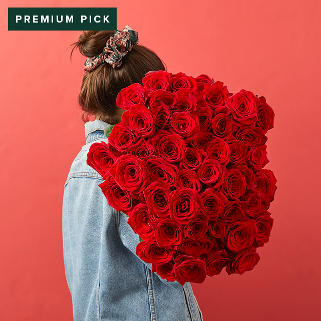 What to Expect: These 50 red roses do not arrive arranged, but as loose stems, ready for some DIY fun. The box will contain multiple bunches of stems, carefully wrapped so they are protected during transport.