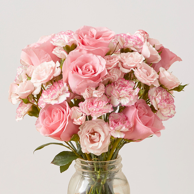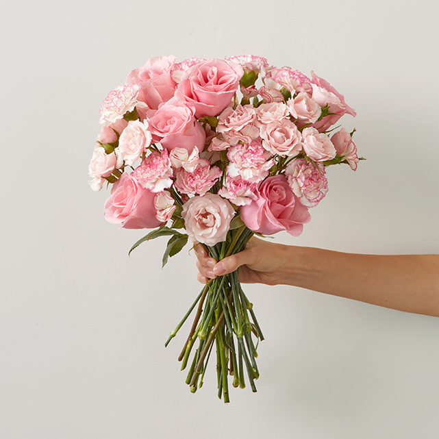 We can’t think of anything sweeter than this delicious bunch of candy-pink carnations and roses.