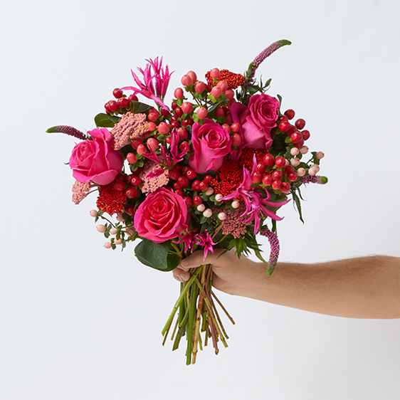 Let cupid’s bow and arrow work its magic in the form of this bouquet. Pink and red flowers – achillea, hypericum, alstroemeria, and roses – will make them heart-eyed at first sight.