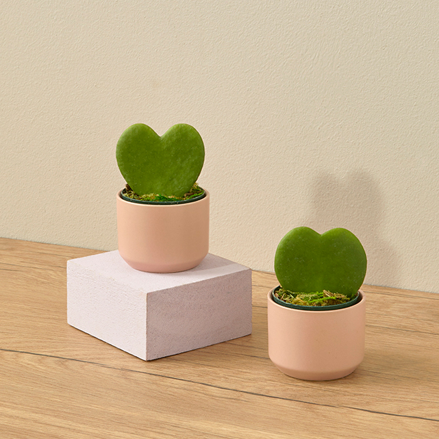 Two Hoya Hearts in Pink Ceramic Planters