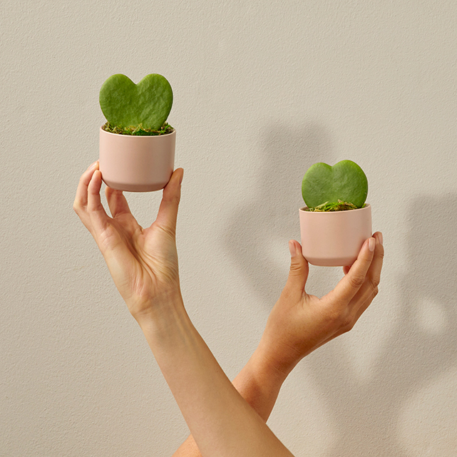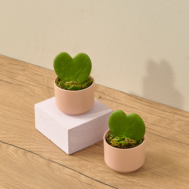 What's Included: Pair of hoya heart plants in pink pots.