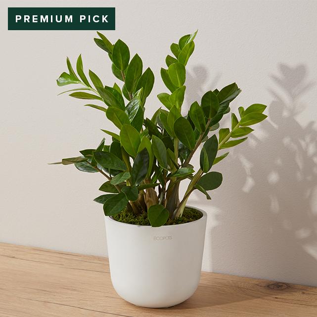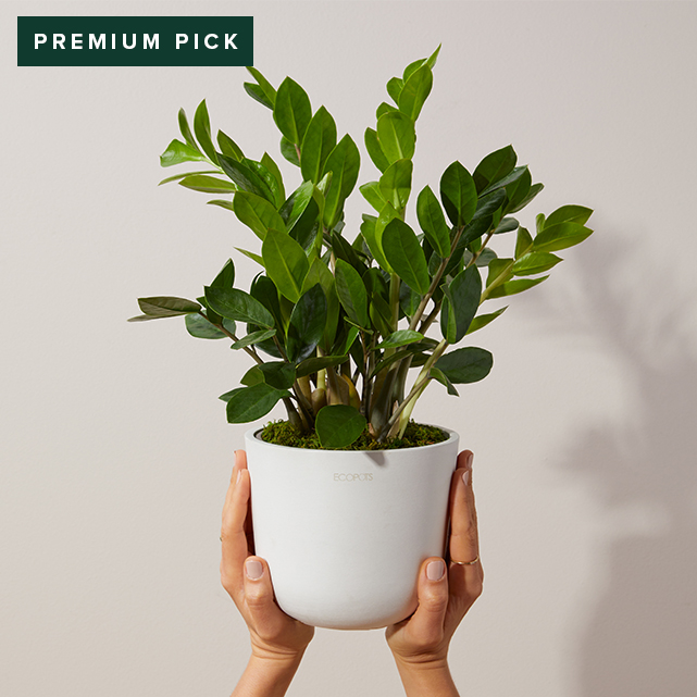 High impact, low maintenance. In addition to being one of the easiest houseplants to care for, studies show the Zamioculcas Zamiifolia may help purify the air. Comes in a stylish white Ecopot, to prevent overwatering and keep roots breathing easy.